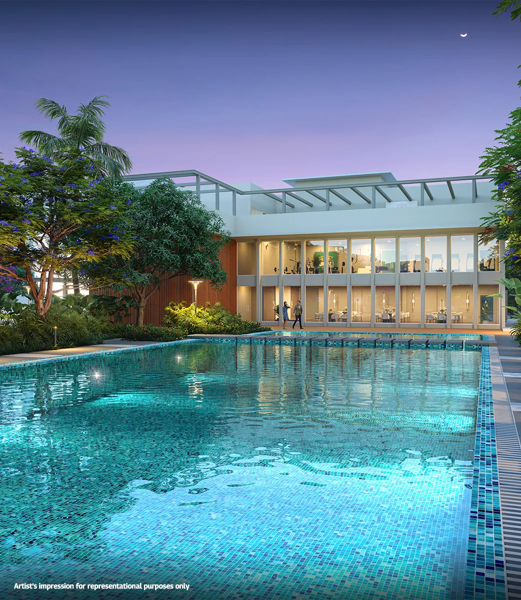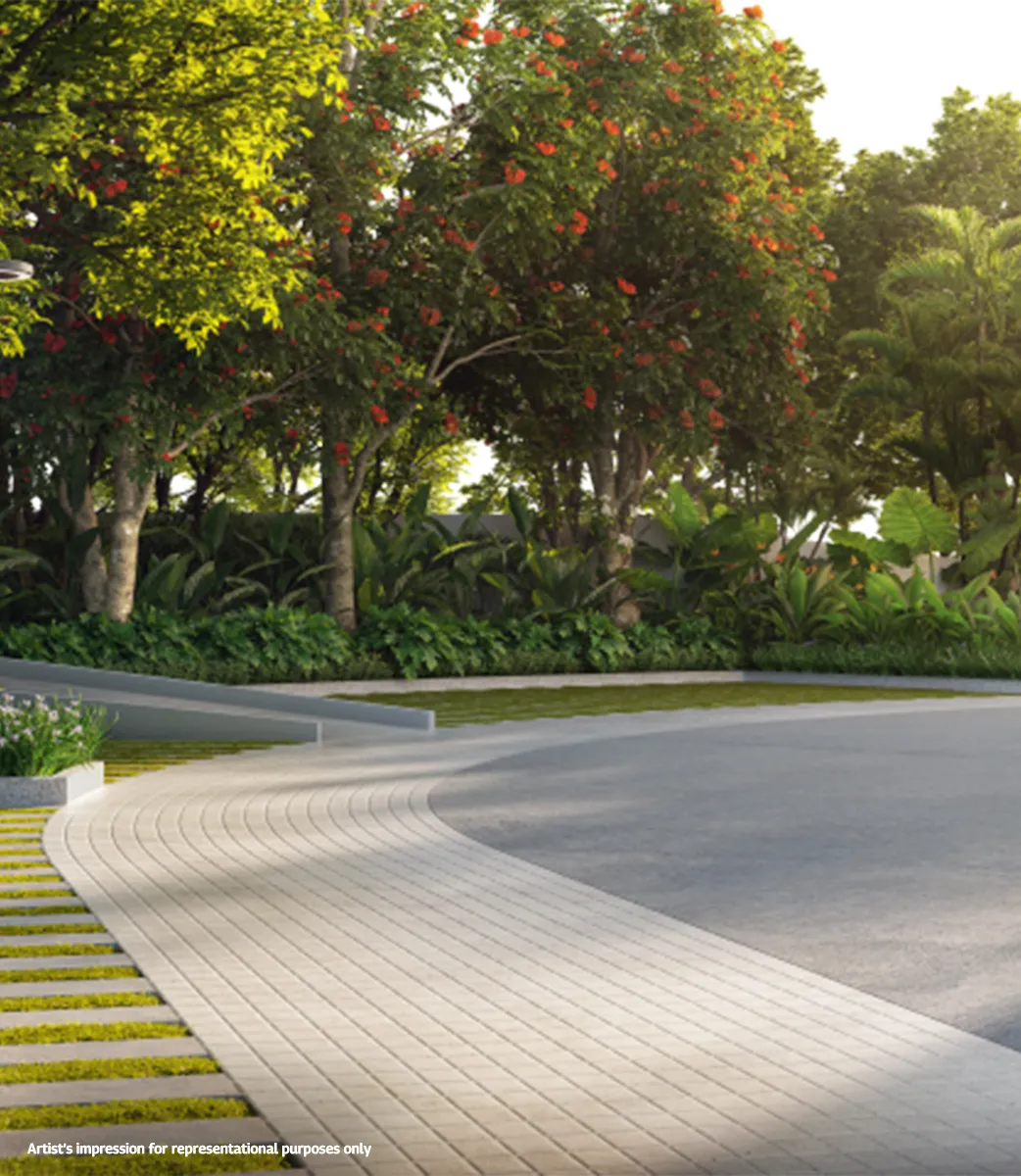 Offering 97,000 sq. ft. of amenities and clubhouse spaces, including Bougainvillea canopies, half-Olympic size swimming pool, two jogging tracks, two badminton courts, a dedicated pet park, and thoughtfully designed community spaces.